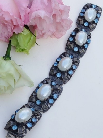 140 lei, cristale,perlele false au fost adăugate ulterior, potrivită oricărei încheieturi de max 17 cm, lățime 3.4 cm, suuperba