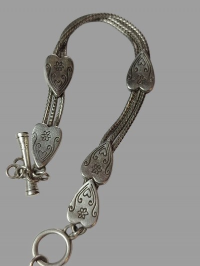 60 lei,argintata im baie se argint ,masiva si grea,.potrivita unei incheieturi mai mici de 18 cm,latime 1.2 cm,impecabila, avsolut suuperba.pare argint insa nu am gasit vreun marcaj.