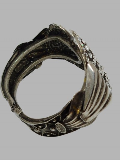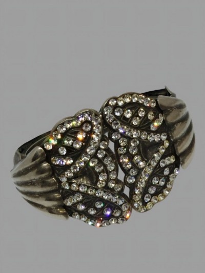 110 lei,masiva, argintata in baie de argint ,cristale, semnata, se deschide, potrivită oricărei încheieturi de max 18 cm, latime 5 cm, impecabila, superba .