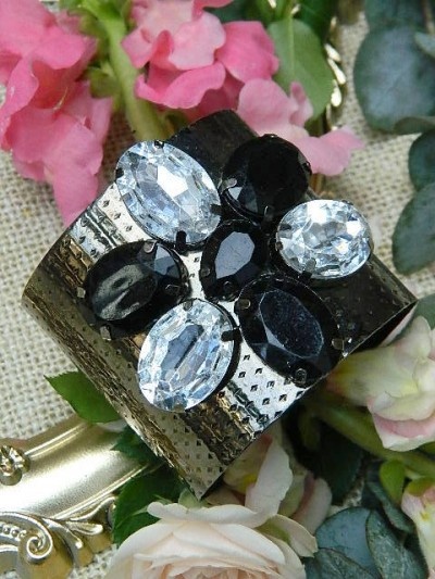 140 lei,metal argintiu/negru, cristale, freesize, latime6 cm,conditie impecabila, masiva