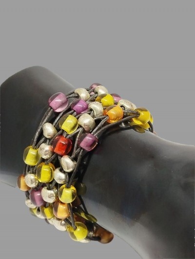 80 lei, piele, metal argintat in baie de argint, sticla de Murano,masiva, potrivita unei incheieturi mai mici de 16.5 vm,latime 5 cm,impecabila, superba.