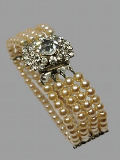 110 lei,perle din sticla ecru, cristale, masiva, potrivită oricărei încheieturi de max 17 cm,latime 2.5 cm, absolut superba.