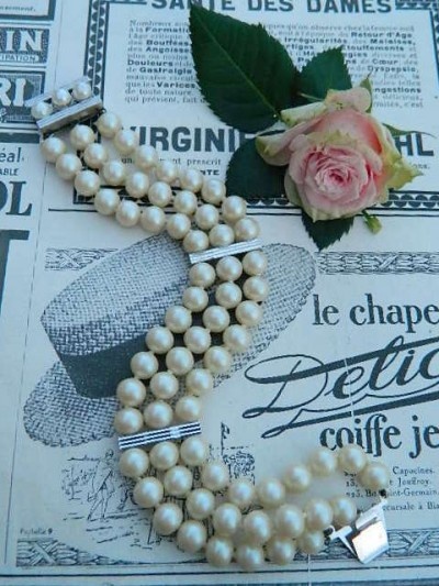 100 lei,metal argintiu si perle grele din sticla, masiva, potrivita unei incheietuiri mai mici de 18 cm, latime 2,2 cm,conditei excelenta, suuuperba