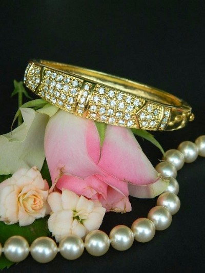80 lei, masiva, suflata cu aur , cristale, se deschide, marcata,potrivita unei incheieturi de max 19 cm, latime 1.3 cm, conditie impecabila, nepurtata