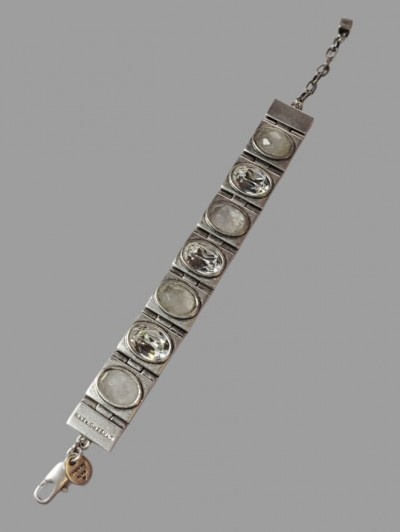 160 lei,masiva si grea, argintata in baie de argint, cristale, semnata, potrivita unei incheieturi de max 19 cm,.latime 1.8 cm, absolut suuuuperba.
