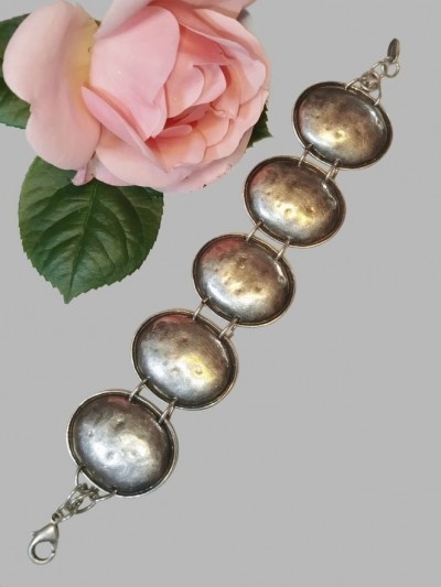 110 leizmasiva, argintata in baie de argint ,semnată, potrivită oricărei încheieturi de max 17 cm, lățime 3.3 cm,impecabila, superbă.