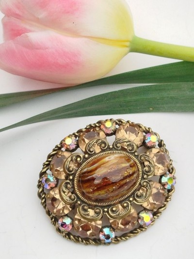 Broșă antique, cristale și piatră, Franta