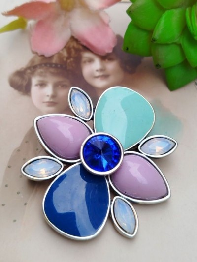 55 lei,metal argintiu, cristale, 4 cm, superbă