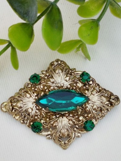 60 lei, metal auriu și cristale verzi, 4/5.5 cm, superbă.