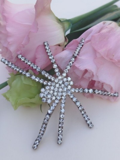 70 lei, metal argintiu și cristale. 5.7 cm, suuperb