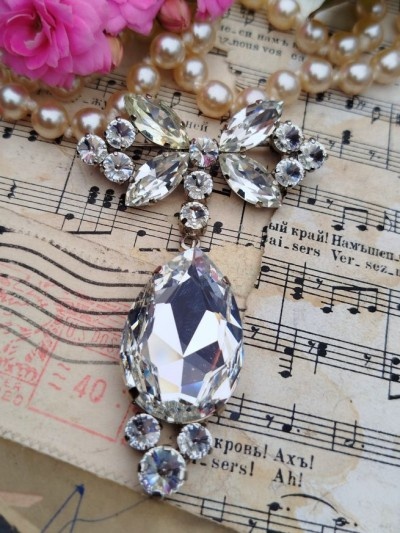Broșă vintage cristale xxl