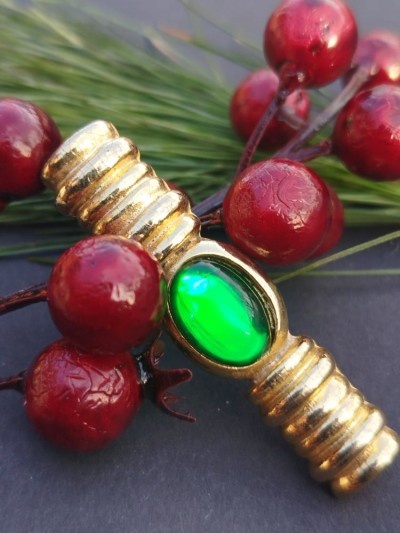 45 lei, Metal auriu masiv, sticla verde,1.3/5.5 cm, superbă