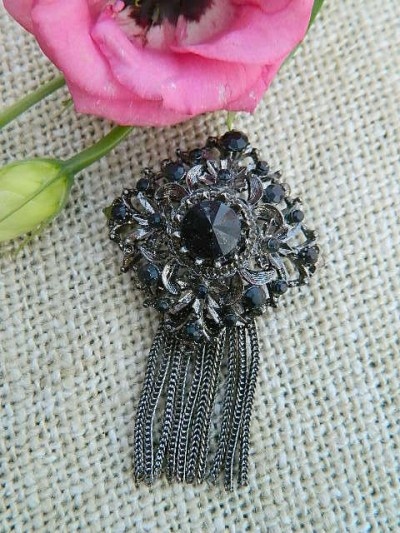90 lei,metal argintiu si cristle, poate fi purtata atat ca brosa cat si ca pandantiv, masiva, 4.2/7 cm,conditie impecabila.