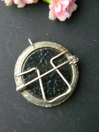110 lei, metal argintiu, masiva, poate fi purtata atat ca brosa cat si ca pandant sau rama, diam 3,2 cm, poza poate fi schimbata, consditie impecabila, suuperba