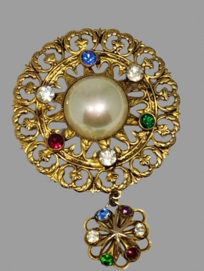 60 lei, metal auriu, cristale si perla 4.3/7 cm,superba.impecabila.