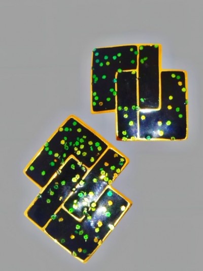 45 lei, clips, metal auriu si email confetti, 4 cm,impecabili