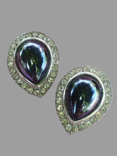70 lei,masivi, suflați cu aur alb, hematie și cristale, clips, 3 cm,imprcabili,superbi.