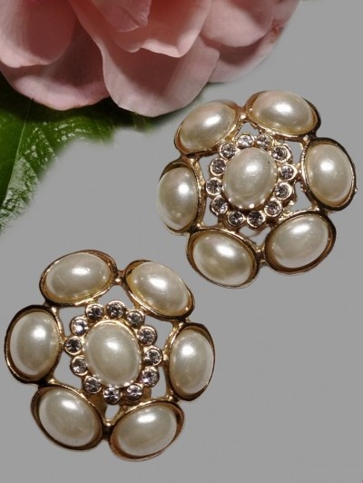 80 lei, auriți,perle și cristale, masivi, clips, diam 3 cm,impecabili.