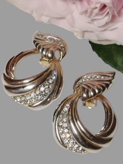 100 lei,masivi, auriti, clips, cristale, 3.3/5 cm,semnati, suuuperbi.