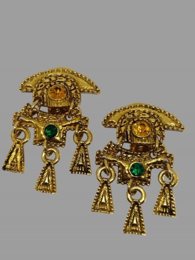 100 lei, auriti,masivi, cristale, semnati,clips, 3.5/5.5 cm,impecabili, superbi.