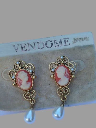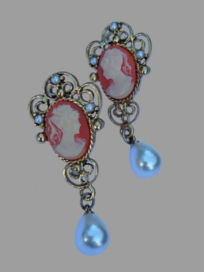 100 lei,metal aurit, camee rasina, perla, surub, 3.5 cm,impecabili, nepurtati.