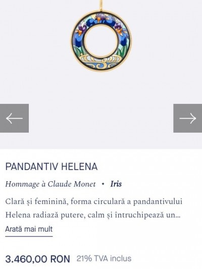 1680 lei, autentic, lant 60 cm, pandantiv Helena diam 3.5 cm masurat fara agatatoare, swmnat, impecabil.