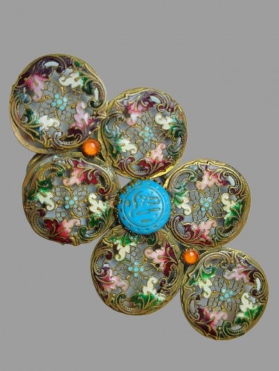 120 lei, masiva, din 2 bucati, emaul si piatra naturala 6/11 cm, impecabila, absolut minunata, poate fi cusuta si pe o jacheta/sal/ capa,