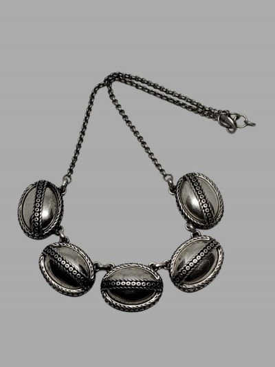 110 lei, masiv si greu, argintat in baie se argint, semnat pe fiecare piesa. Lungime max 43 cm, centru 15/3.4 cm,impecabil, suuperb.