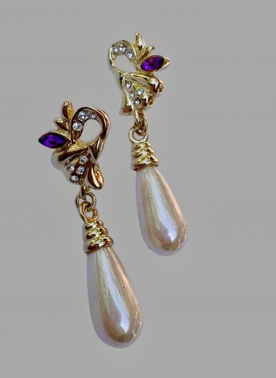 55 lei, masivi, auriți, surub, cristale si perla sticla,1,7/5,5 cm, impecabili, superbi