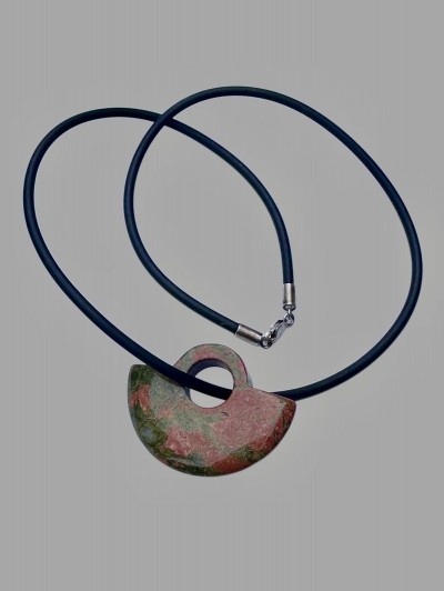 Colier piatra naturala,cauciuc si argint