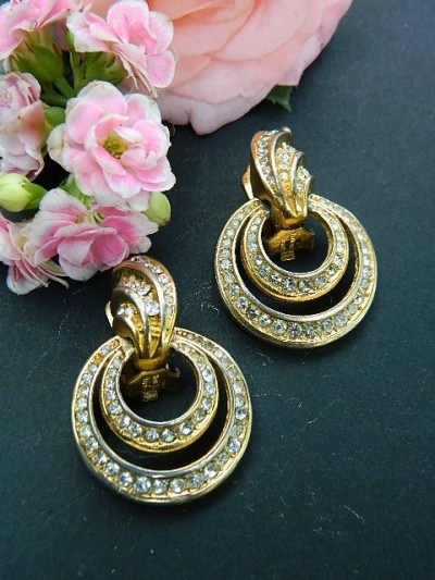 640 lei, placati cu aur, semnati, cristale, clips, masivi, 3/4 cm,conditie excelenta