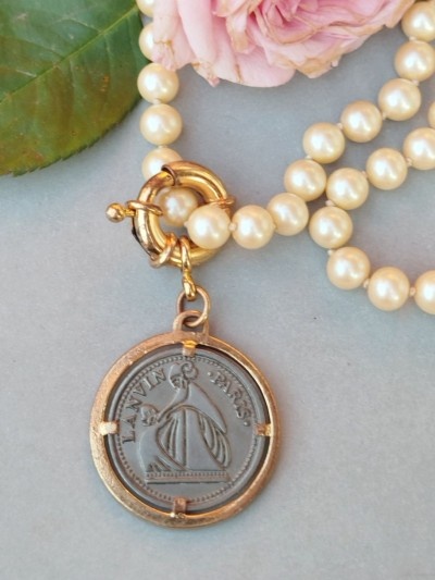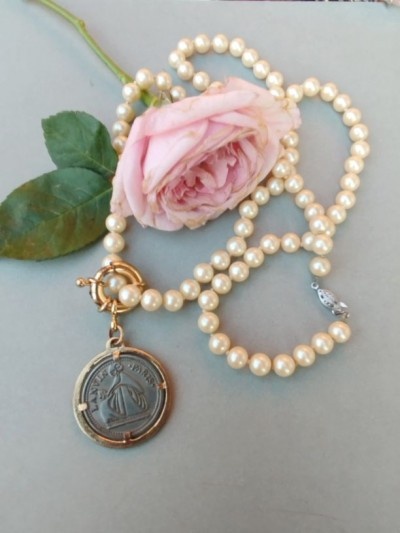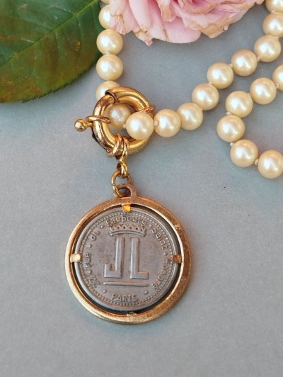 630 lei, centru 3.5/7 cm, atașat la colier maxi perle vintage din sticla, lungime 78 cm, absolut suuperb