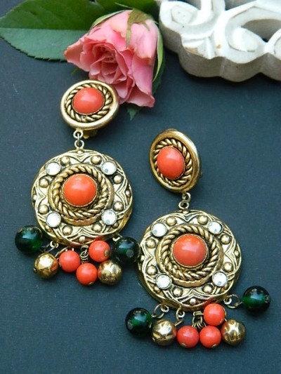 190 lei,metal aurit si sticla, masivi, clips, semnati, 4/8.5 cm,conditie excelenta, superbi, semnati, suuuperbi