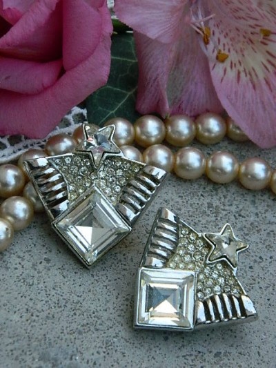150 lei,metal argintiu si cristale, clips, semnati, masivi, 3,7 cm,conditei impecabila, nepurtati, suuuperbi