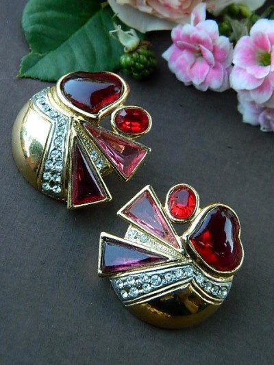 180 lei,masivi, placati cu aur, sticla si cristale, clips , semnati, diam 3.5 cm,conditie impecabila, nepurtati, superbi